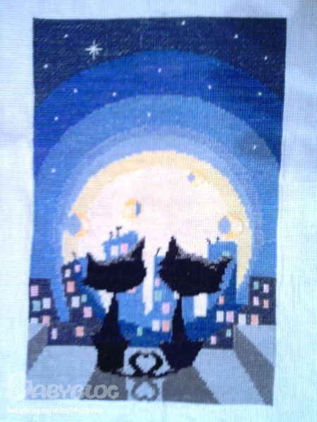 На сайте я зарегистрирована давно, но долгое время была только наблюдателем. Часто заходила на сайт, просматривала работы мастериц, восхищалась ими и на этом все. Но некоторое время назад пошла у меня в жизни черная полоса: с работы пришлось уволиться, мужчина с которым прожила 3,5 года переехал в другую страну, устроиться на другую работу никак не получалось...руки опускались. И вот убираясь дома я обнаружила пакет с огромным мотком ниток мулине, доставшиеся еще от бабушки, тут же вспомнилось что зимой я, не понятно по каким причинам, купила метражом канву. Отложив все дела я села творить. Нитки подбирала на глаз из того что было, поэтому вышитые картины, на мой взгляд, получились не очень. Но когда я закончила первую вышивку, мне стало легче как то...настроение улучшилось и я решительно взялась за следующую картину. Вот вроде и вся история.