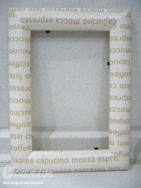 Отшкурила, загрунтовала, приклеила салфетку, нанесла 1 слой лака. Хочу еще приклеить по уголкам зерна кофе.