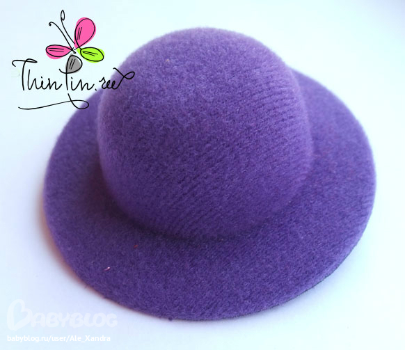 Диаметр основания 7 см. Материал- фетр. Шляпка закреплена на плоском зажиме крокодиле, может использоваться просто как заколка, или крепиться на ободке. Цена 45 р/шт