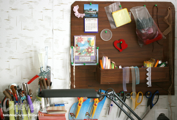 Доска над столом с ящичком была, очень у меня этот ящичек пользовался популярностью ))