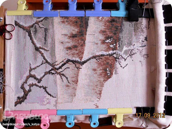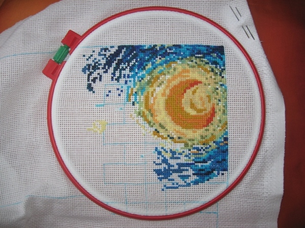 У меня очень мало времени на вышивку сейчас. Целое лето я не работала, поэтому сейчас приходится брать много работы, в том числе и вечером. А поскольку самих рабочих часов у меня не так много, но рабочий день ненормированный, получается, что вроде на саму работу ушло 2-3 часа, но весь день разорван. А в 22 часа мне почему-то уже хочется спать... ((( Так что вышила совсем мало. Да, прежний закат я довышивала, показала в прошлом отчете, но отчитывалась последняя, так что многие, наверное, ни видели.