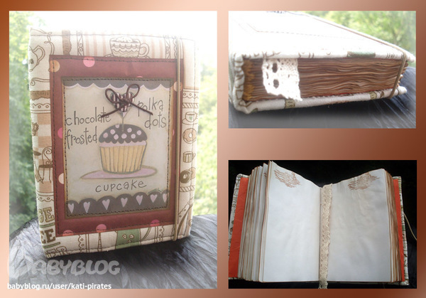 Формат А6, 100 состаренных и проштампованных страничек, обложка мягкая, обтянута хлопком. кружевная закладка.