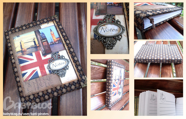 Этот блокнотик последний, сделан для преподавателя английского языка. Формат А5, 110 линованный страничек, закрывается на резинку, закладка - замшевая полоска. Обложка полумягкая, обтянута хлопком.