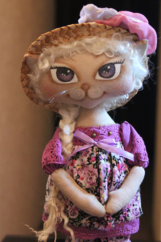 В выходные ходили на ДР, у неё детки - двойняшки (мальчик и девочка). Варвара большая любительница кисок и Ольга попросила сшить ей киску... сделала рыжика, как и хозяйка :)