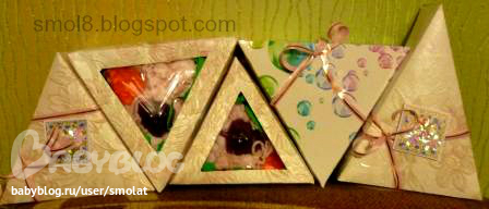 Какие классные получились упаковочки! По опыту знаю, что упаковка в нашем деле становится чуть ли не самой большой проблемой. По крайней мере у меня так и было. Я правда, мыло не варю. Я делаю косметику. Но от этого не легче :) Может быть даже еще тяжлее :) Крем ведь в пакет не положишь :) В общем приходится вертеться, да еще придумывать новые рецепты - творить-то ведь хочется :) А упаковка вечно где-то на заднем плане "тащится" :)А у вас получилась просто красотища! Очень понравилось