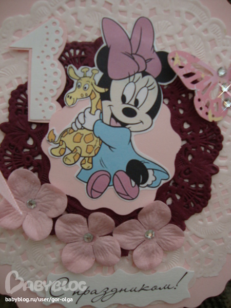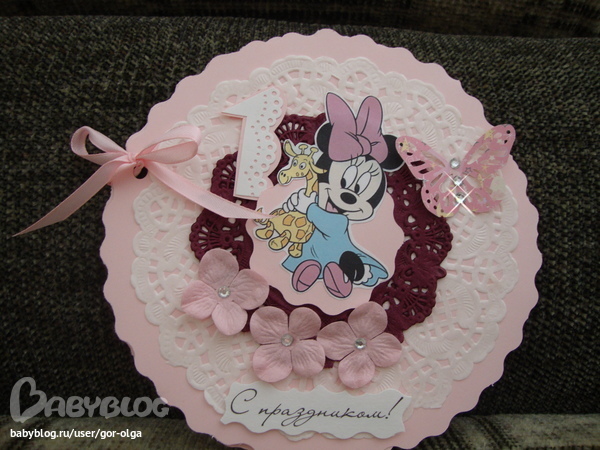 Есть у нас в семье одна принцесочка, которой вчера был один годик. И поэтому торжеству я сделала вот такую открыточку