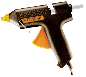 крупные детали(пуговицы, самодельные,тканевые и др. крупные цветы и всякое разное) приклеиваю силиконом, с пом.электрического силиконового пистолета,типа такого...