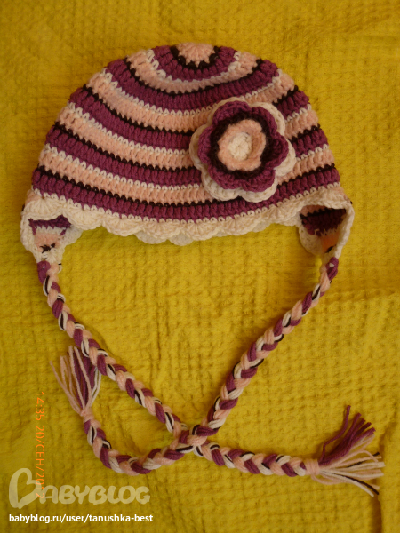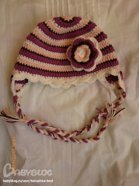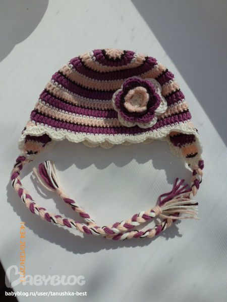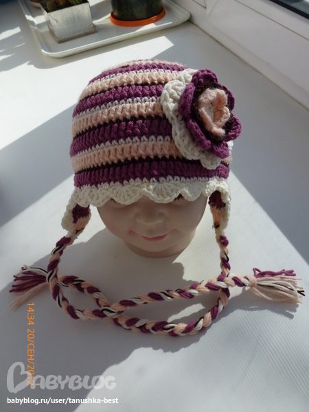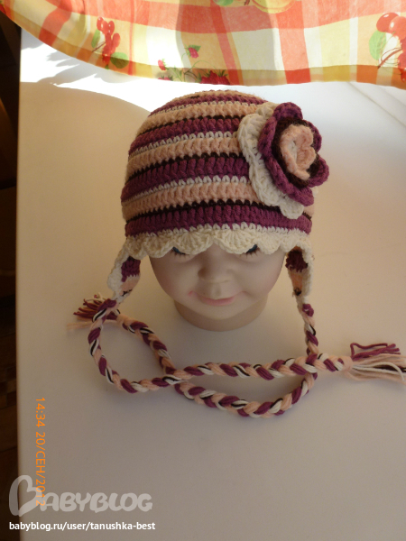 шапуля для девулечки 0-3 мес, автор Kapitoshka, счастливая обладательница шапки Елена http://www.babyblog.ru/user/lenta/alena99t201