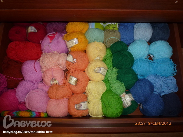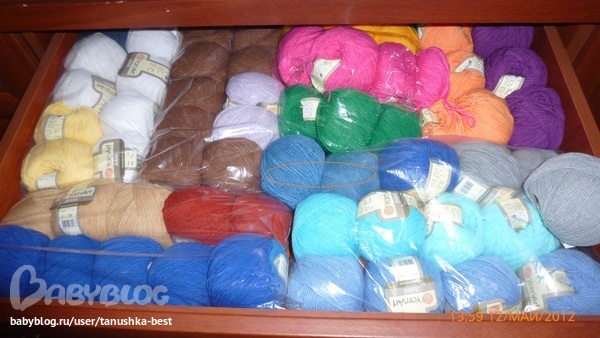 Вот это ДАААААААААА!!!!!А я думала,что у меня много пряжи)))))У тебя целая фабрика и все такое яркое и красивое)))Хорошо,что завтра уезжаю и не будет соблазна прикупить себе столько же))))Знаю,у тебя все это улетает со скоростью звука,ты же у нас золушка золотые ручки,все вяжешь и вяжешь,пчелка Майя)))
