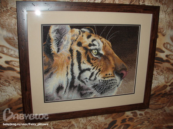 В шесть нитей крест или полукрест? Полукрест протягивать жесть, но если это фон, смотрится супер (плотность как у коврика). У моего тигра был верхний фон в 6, как раз на 14-й.