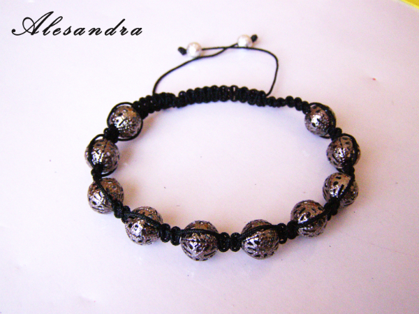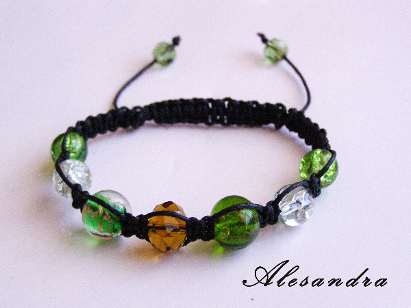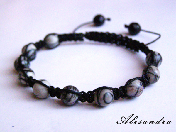 браслет шамбала с натуральным камнем (опалит), металлической бусиной со стразами, металлическими бусинами, вощенный шнур