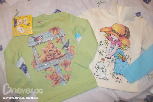 Ольга у вас понравились Одежда для девочки - новая (на рост 92, водолазка с кошечкой или с феями или с девочкой и щенком) или могу на пряжу поменять