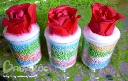 Коктейли с бисером, сверху - взбитое мыло с ароматом смородины.
