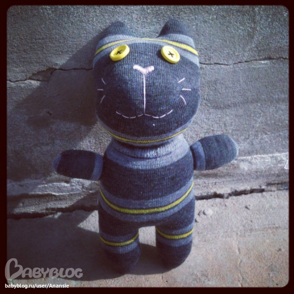 Игрушечный мир - животныеПока я была в отпуске, в гости приезжала подруга со всем семейством. Дело было первого сентября, ее сын пошел в первый раз в школу и я решила сделать ему подарок. Накануне сшила вот такого кота: