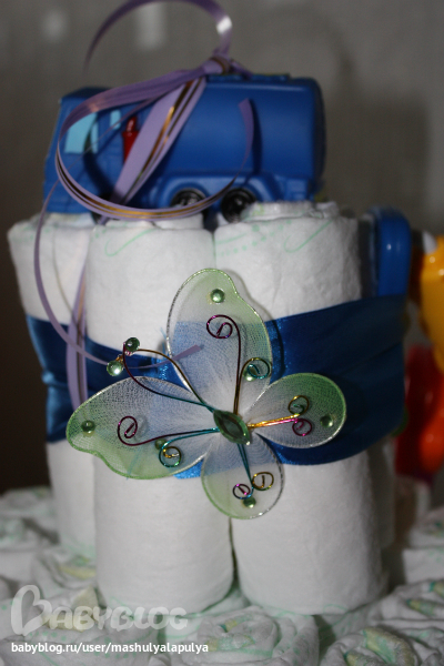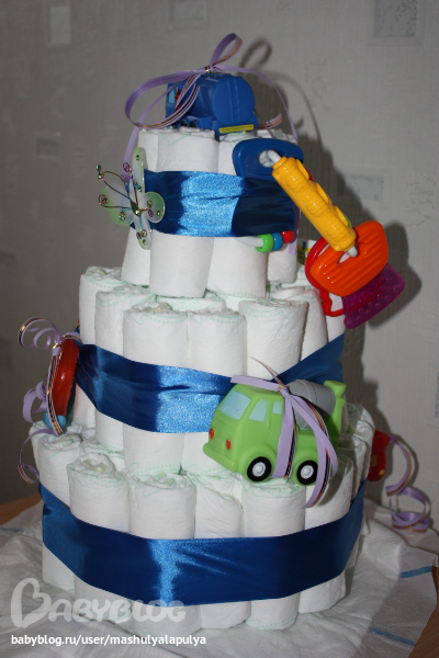 Очень мне нравятся тортики из подгузников, а тут повод появился попробовать его приготовить. У моей дорогой Светочки