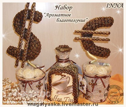 А еще можно сделать денежное дерево из кофе (топиарий) или из бисера (примеры из интернета)