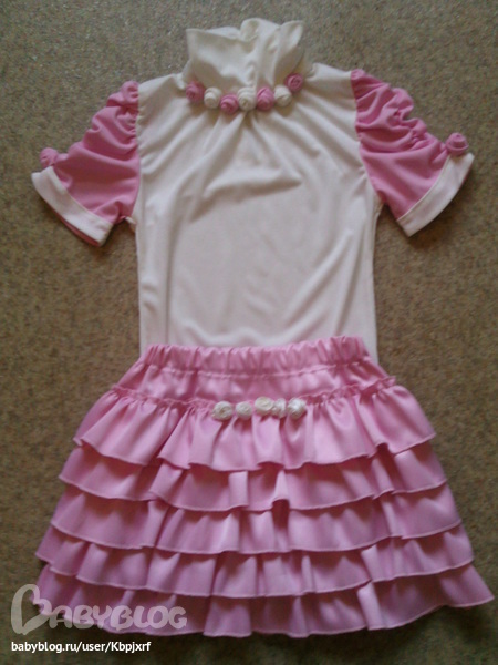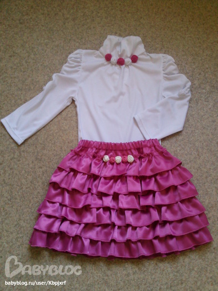 водолазка молочного цвета и розовая юбочка из сатина.
