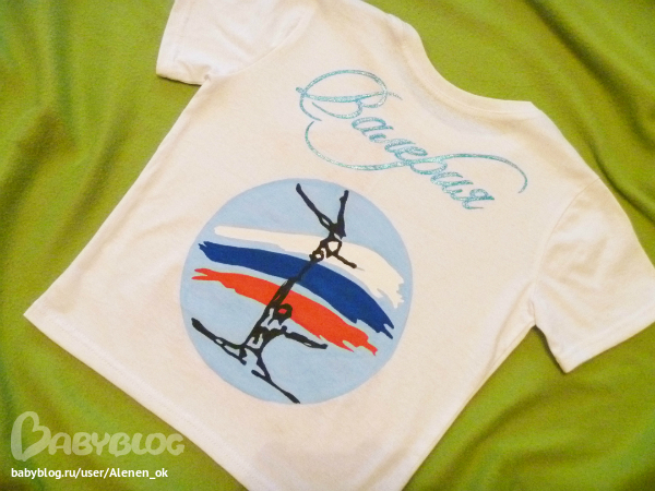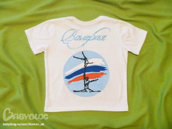 Для Валерии, занимающейся акробатикой! На спине эмблема клуба и имя девочки! Буковки с металлическим эффектом!