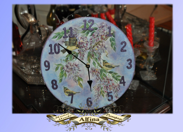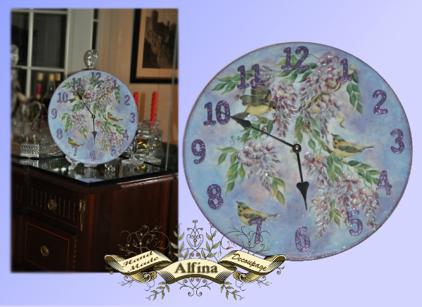 Спасибо, Саш!!! Да, меня тоже ""ломало"", когда цыфири клеила... Постаралсь их сделать в тон самому темному цвету мотива, чтоб гармонично было. А с этими часиками история была такая, что вообще не шла работа..салфеток куча, карт всяких тоже - не идет и все. А потом закрома перебирала, наткнулась случайно на эту карту - и все моментально сложилось!