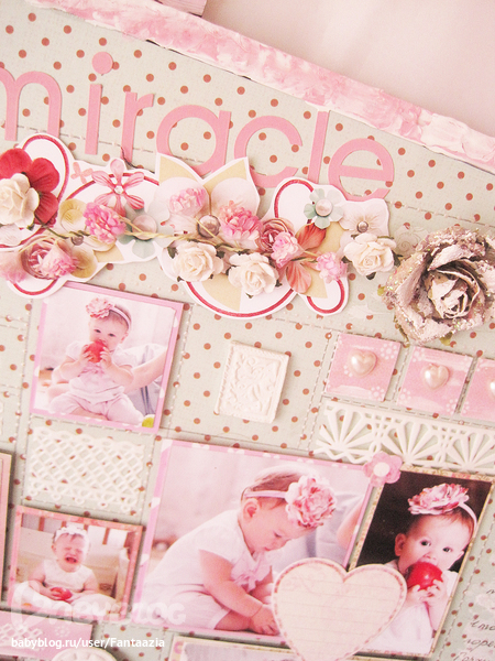 Очень гармонично получилось конструктивно и по цвету! Одно смущает, не пойму, что по периметру. Ощущение, что где-то бумага плотнее прилегает, где-то отходит. Создается впечатление неаккуратности. Могу ошибаться. Для шебби надпись miracle и цветочный принт рядом надо было тоже сострарить.Слишком они по-новому выгдядят. Подложки под фото тоже. Как-то так )))