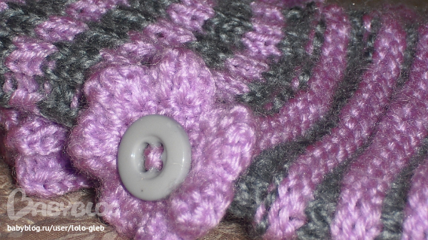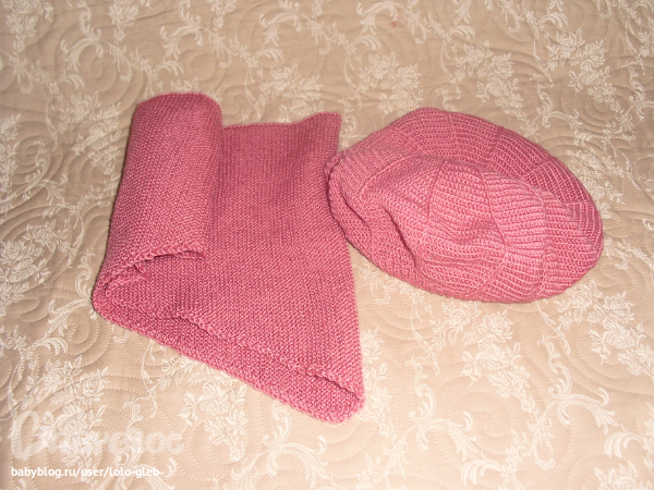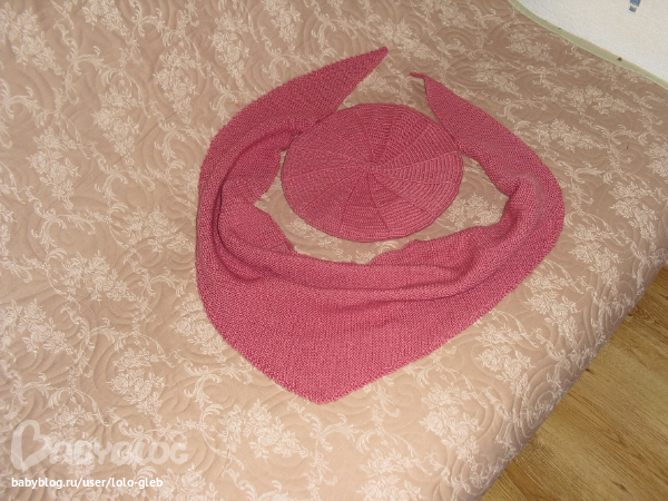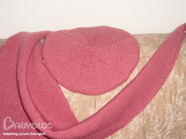 Давно уже связала, никак не выложу . Связался очень быстро из полушерстяной пряжи Пехорской , бактус вязался спицами , берет крючком , на все ушло меньше полутора моточка.