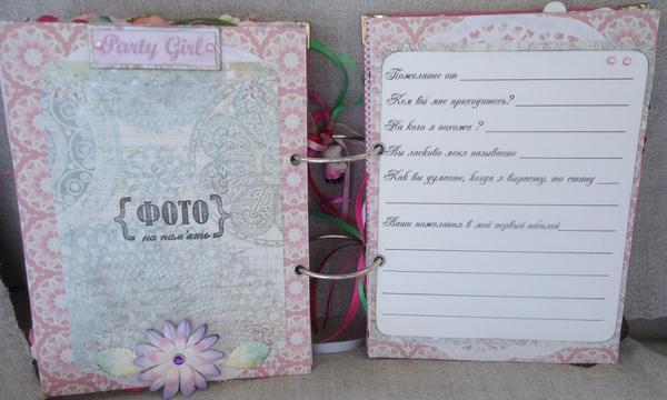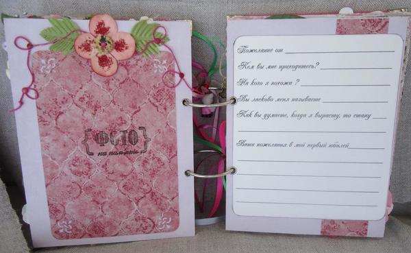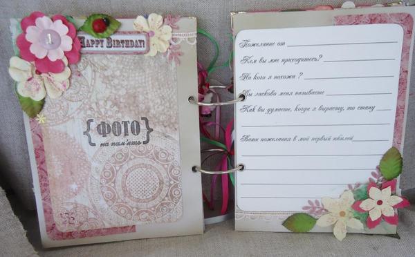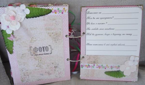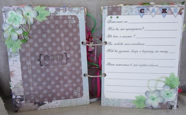 СкрапбукингСделалось относительно быстро для хорошей девушки Анны (не работает ссылка на пользователя с картинкой--бразуер надо обновить), но мы отвлеклись ). Получилась довольно пухленькая книжечка размером примерно 16х21 см, одиннадцать листов, мягкая тканевая обложка на синтепоне, кольца вставляла мЕьшего диаметра, но книжка становилась полураскрытой-некрасиво смотрелась,поэтому на больших кольцах она...)