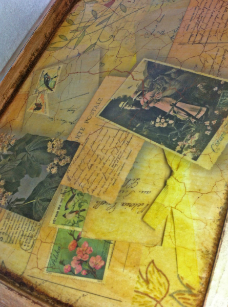 Материалы: декупажная карта, салфетка, акриловые краски, двушаговый кракелюр.