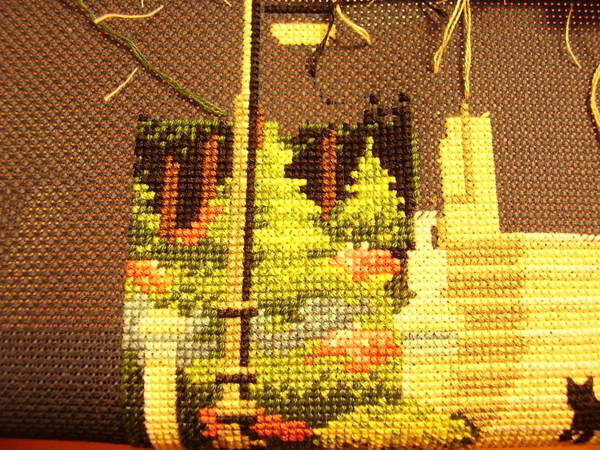 оо..однообразие тонов убивает....тут всего то 25 цветов...особо не разгуляешься. на самом деле ее можно было вышить за год спокойно..но я просто тупо ленилась..