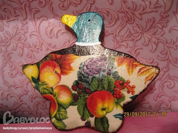 Панно из шпателей ОЧЕНЬ интересное!!!! И подставочки классные!!!! "Утка с яблоками"... название очень рассмешило))))) Сама работа действительно как-то не закончена... Я поэтому боюсь брать подобные заготовочки... Не могу их правильно увидеть))))
