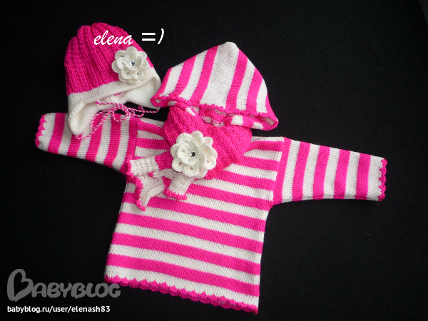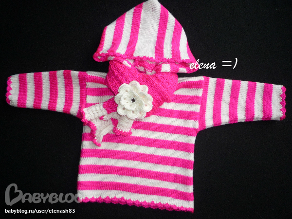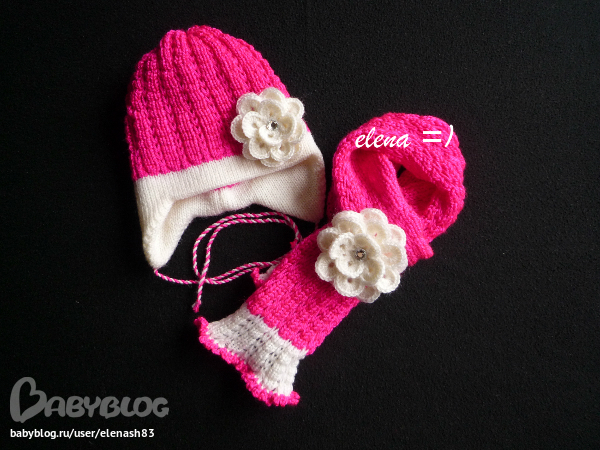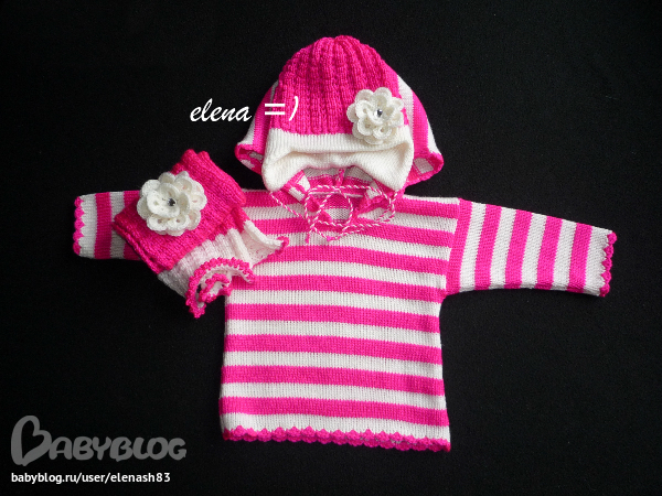Захотелось мне показать один из последних заказов. Получился такой яркий костюм=). Девочкам жуть люблю как вязать=))),но...пока приходится только чужим=))). Цветок с шарфа на булавке и легко снимается,можно прицепить в любое место.