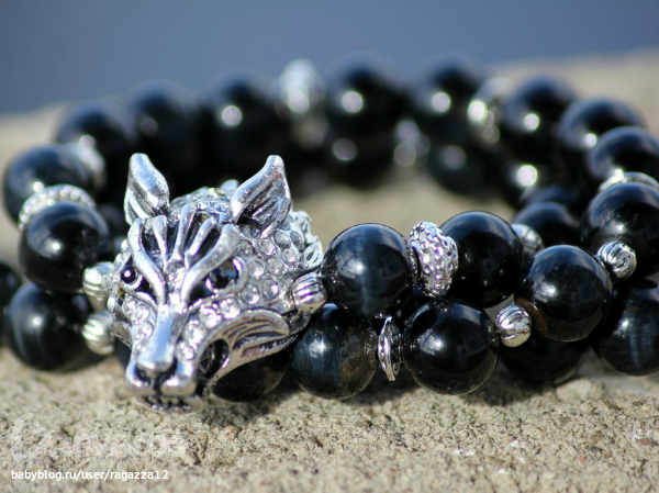 Это мои первые мужские бусы " Вожак стаи".Сделаны из шикарного ( не имитация!!!) соколиного глаза и фурнитуры под серебро.Морда волка хоть и со стразами,выглядит очень серьезно и мужественно!!