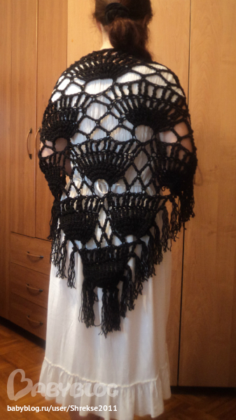 Шаль моя настолько понравилась,что заказали еще 2))Один цвет,одна модель,одна хозяйка-а образы совершенно разные!Легкий романтичный ажур и теплый вариант для верхней одежды.Для теплой шали использовала очень толстую пряжу (50% мериносовая шерсть,70 м в 100 гр),так что в ее тепле и практичности я уверена.