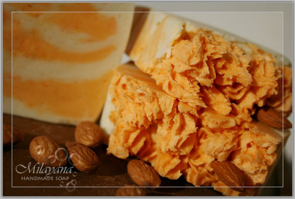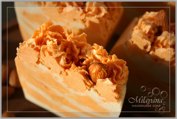 Слегка взбитое, воздушное натуральное мыло "Almond" обогащено маслом сладкого миндаля, сварено с использованием масел манго, какао, пальмового, пальмоядрового. Благоухает миндальным орехом!