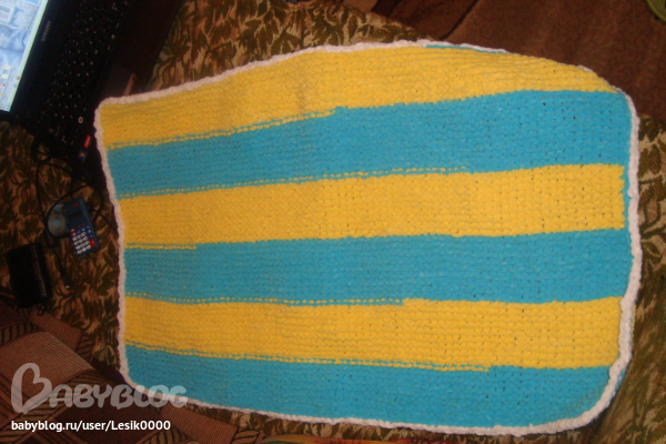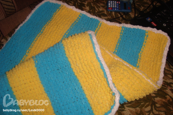вот такой плед связался из плюшевой пряжи, мягкий и теплый... пряжу заказывала у орга Ольги ( lelkababe2), вязала простой платочной вязкой, спицами № 6...