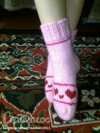 связались для дочки носочки шерстяные.очень хотела ей сделать с пчелками.но места мало было.осталось сделать только с сердечками.вышила сверху.грубовато получилось.но....что получилось то получилось.и себе простые носочки.пряжа суперская.очень люблю ее.ярн арт мериноска.очень мягкая и что самое главное не колючая.