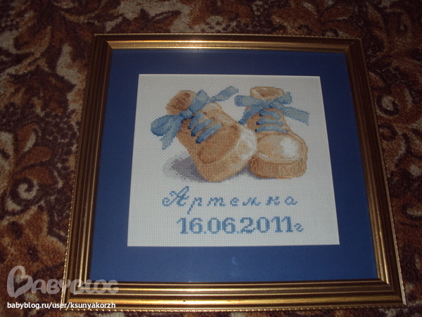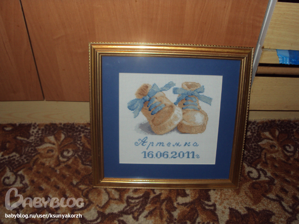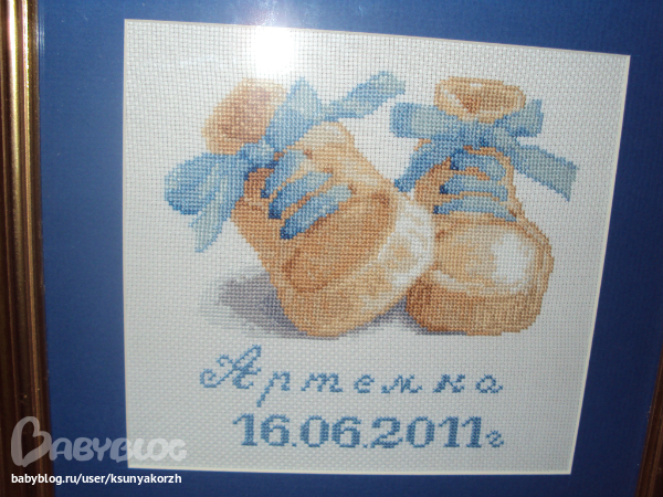 Наконец то я сбалансировала время от работы и домашних дел и стала успевать по чуть чуть вышивать. Правда когда прихожу совсем поздно уже не до этого, но я стараюсь. Вот что подарила крестнику своему маленькому.