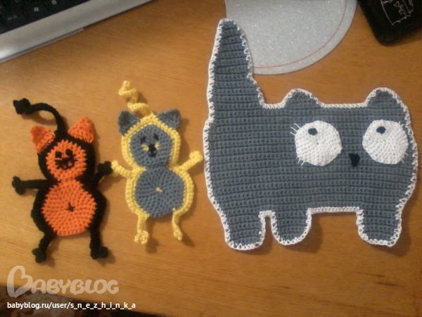 Здорово, я просто в восторге от желто-оранжевой кофточки. А она маленькой не будет ляле? А по поводу серого котика у меня появилась своя задумка, фоточку в закладки кинула. Спасибо за идею, когда сделаю - выложу.