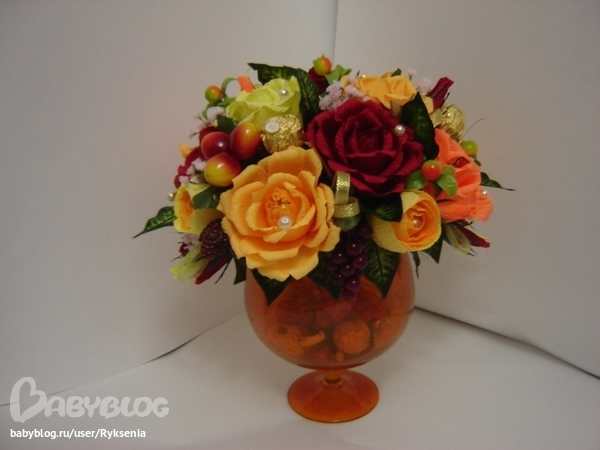 Всё так классно подобрано. Прелесть. Но когда смотришь на 1,2,4 фото,то хочется букетик повыше сделать.Почитай про правило золотого сечения во флористике, как правильно подбирать пропорции букетов (если не найдешь, я тебе сброшу)