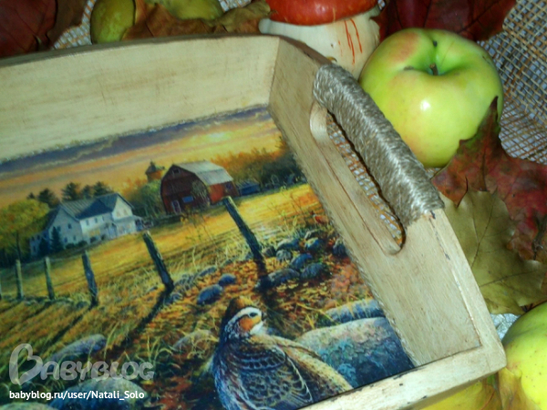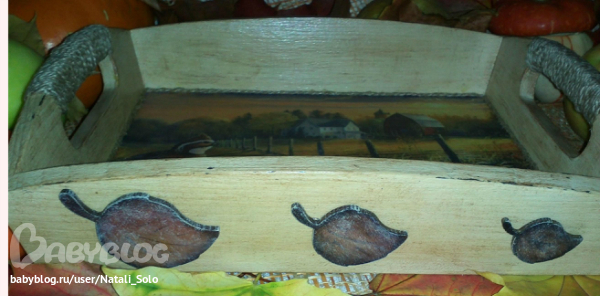 Поднос очень клевый!!!все в нем на своих местах!ручки очень интересно сделаны первый разтакое вижу!а листочки из чего??