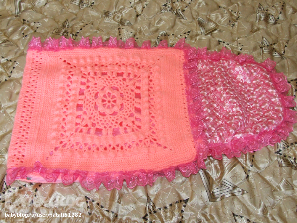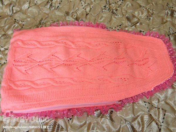 Спасибо! Да, просто вязаный не подойдет, если только попробовать его связать объемным рисунком спицами, чтобы не был тонким. Как вариант - связать красивое покрывало или плед, под него купить одеяло обычное. Красивой лентой перевязать. Потом вязаную красоту можно в коляске использовать - красиво и практичнее конверта.