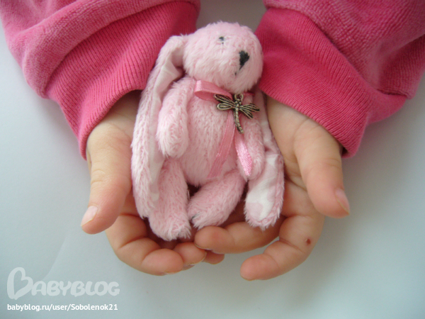 Спасибки!!!! зайка в полный рост 7 см ))) Специально Нютика к фотосету привлекла чтобы было видно какой он малявочка даже в ее ручках ))