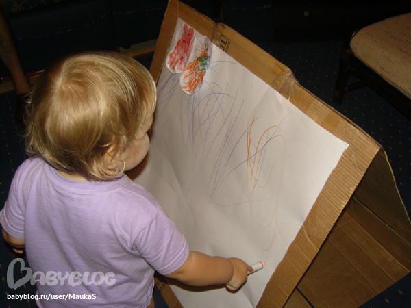 Она до этого у нас "домом" работала, Ваня ее всю изрисовал, потом она "посылкой" работала, т.к. ребенок мультик насмотрелся "подарок для самого слабого" и загонял меня в коробку изображать льва. Пусть еще "туннелем" отработает и можно с чистой душой нести на мусорку
