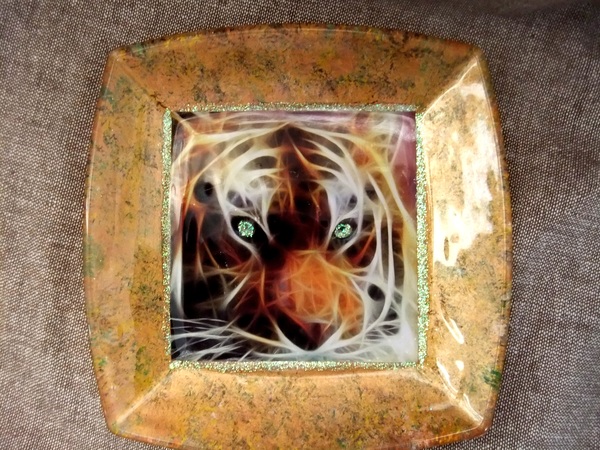 Урок № 4 http://www.babyblog.ru/community/post/decoupageschool/1697586 Моя тарелочка с обратным декупажем "Тигрище"