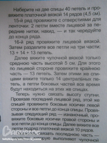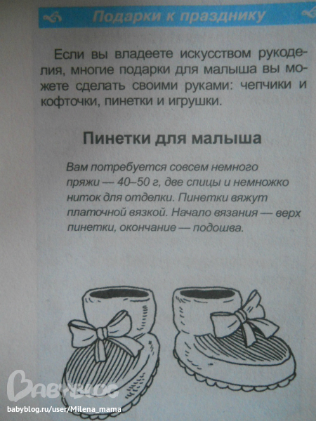 Подошву пинеток вязала не по этому описанию,т.к. не поняла,вязала прямоугольничком от носочка к пяточке,по бокам провязывала последниюю петельку с петлей от боковой части пинетки, конкретней наверное объяснить не смогу) Надеюсь, по описанию из книги вам будет понятнее))))
