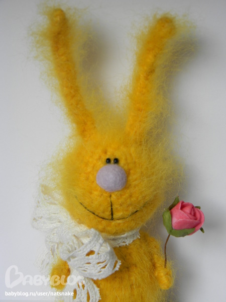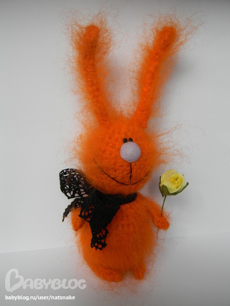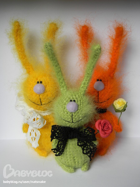 Очень позитивные зайцы, я таких котов вязала. А скажите, пожалуйста, что за нитки вы использовали?