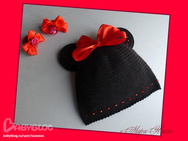Шапочка связана крючком из пряжи "Детский каприз", украшена бусинами и ярким "Мини-бантом", что и вносит свою изюминку и делает шапочку такой романтичной!!!