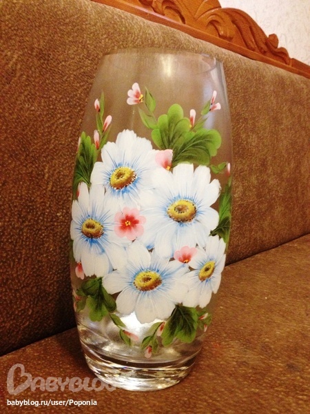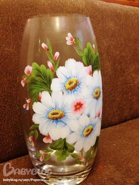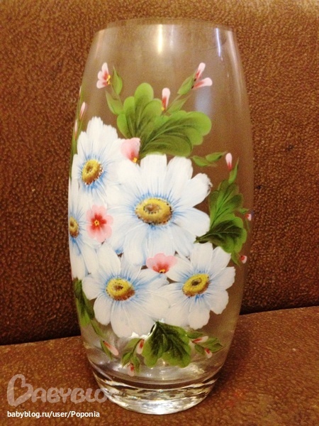 давно стояла эта ваза у нас в отделе на работе. И при каждом празднике дружные соседи по кабинетам пытались у нас ее заиграть! но не тут то было! ))) я вспомнила, что когда то училась рисовать и решила "пометить" нашу вазочку!