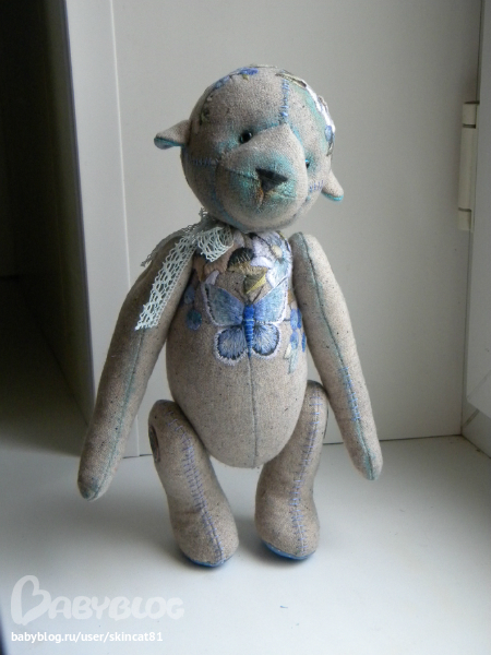 Ксюша,ты волшебница!!! такого я еще не видела,твой мишка особенный ,очаровательный ,такого надо в коллекцию и любоваться им ) вышивка потрясающе легла на него ,ты чудо!