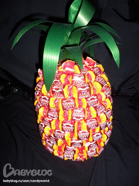 Привет, основу сделала из пенопласта, опклеила двухсторонним скотчем, а на него конфетки