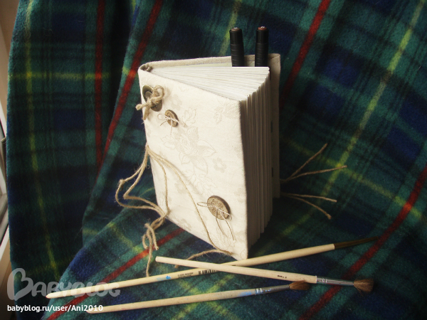 Обложка так же тонирована в кофе, использован ждут и пуговки для украшения.
